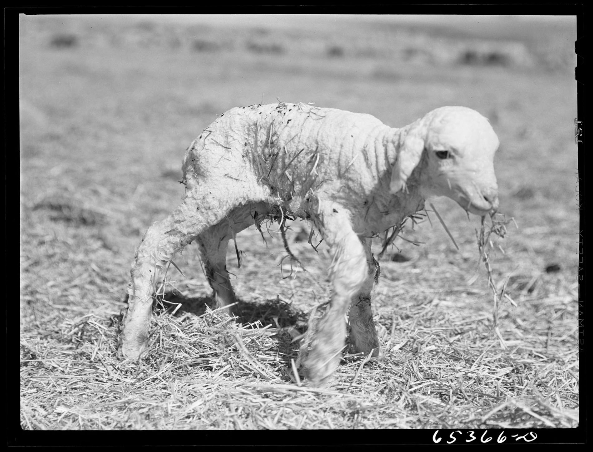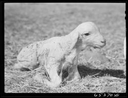 Vachon, John, photographer. Ravalli County, Montana. Lamb immediately after birth. Ravalli County United States Montana, 1942. Apr. Photograph.